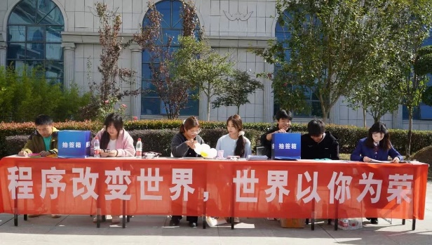 最后,这里设置了一系列与程序员文化相关的趣味背景板,吸引了来往师生停下脚步拍照留念。大家纷纷摆出各种创意姿势,记录下这个特别的日子,同时也将这份对科技的热爱与追求定格在镜头中。